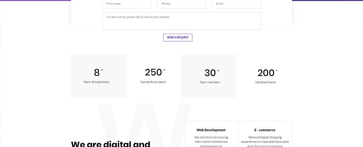 The agency builds personal brands for entrepreneurs and corporates. We built a page with all kind of information about the service, examples of results, case studies, testimonials of old clients and pricing packages. We like to build new websites especially for any kind of marketing agencies. At this time we created a landing page for social media marketing agency.